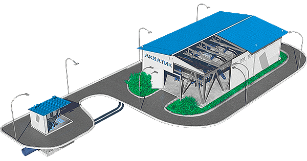 Сооружения для приёма и многостадийной очистки поверхностных сточных вод с застроенных территорий, площадок промышленных предприятий и автомобильных дорог.